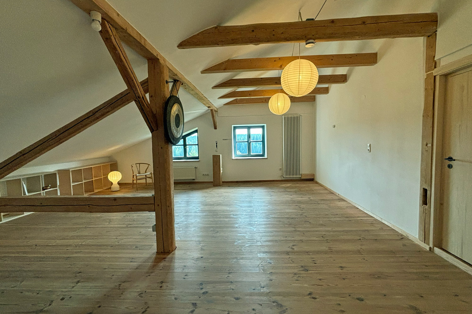 Jetzt NEU: Ein atmosphärischer 50qm großer Raum, der für Joga und Meditation gebucht werden kann. Preis auf Anfrage.